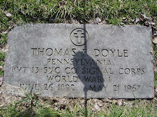 There is something quite interesting about the marker that gave me my genealogical start: That of John J. DOYLE (1920-1943).